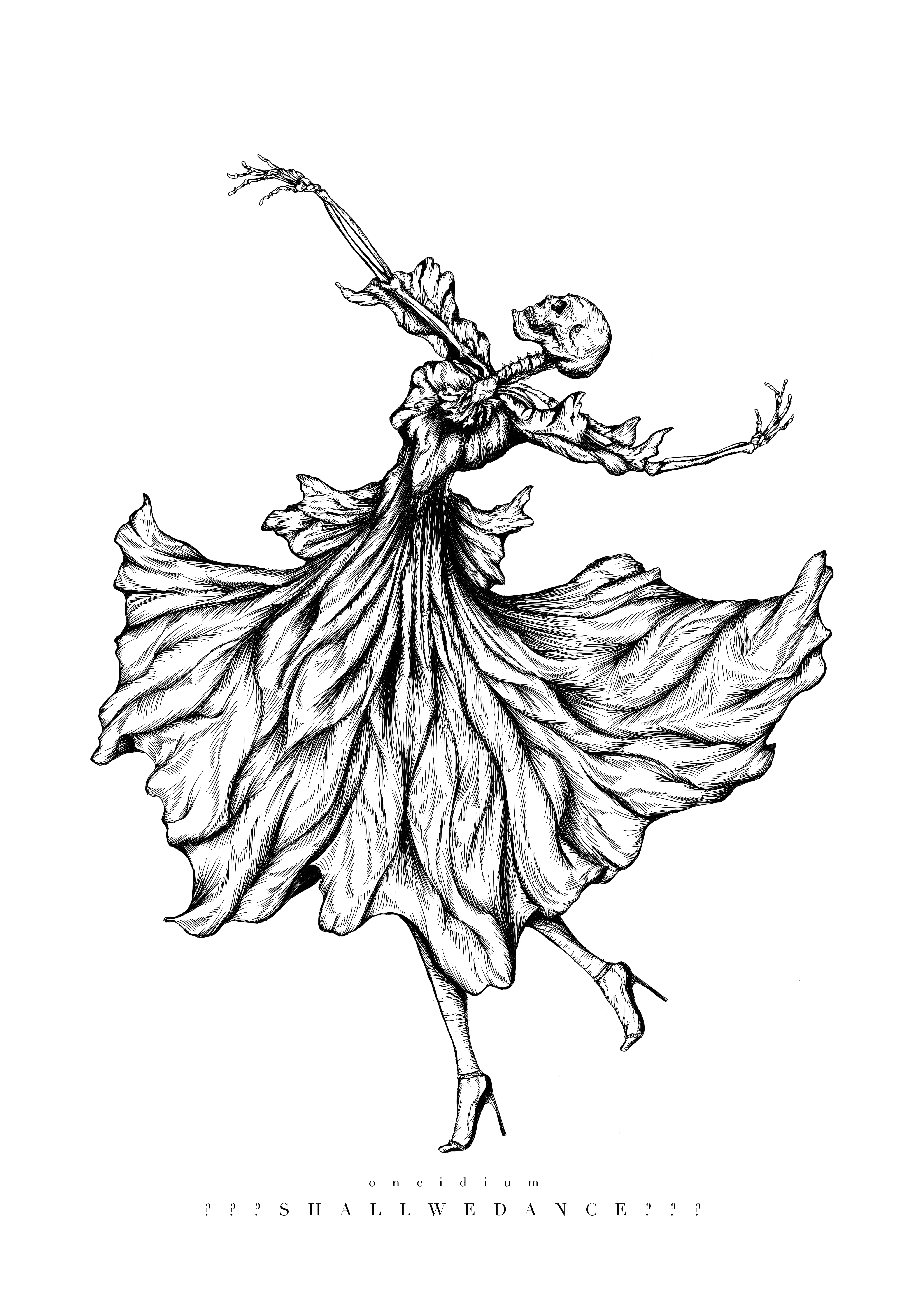 踊っている女性をスカルで描いているのは、僕の中での生命の象徴である「お花」と死を連想させる「スカル」を対比させるためです。