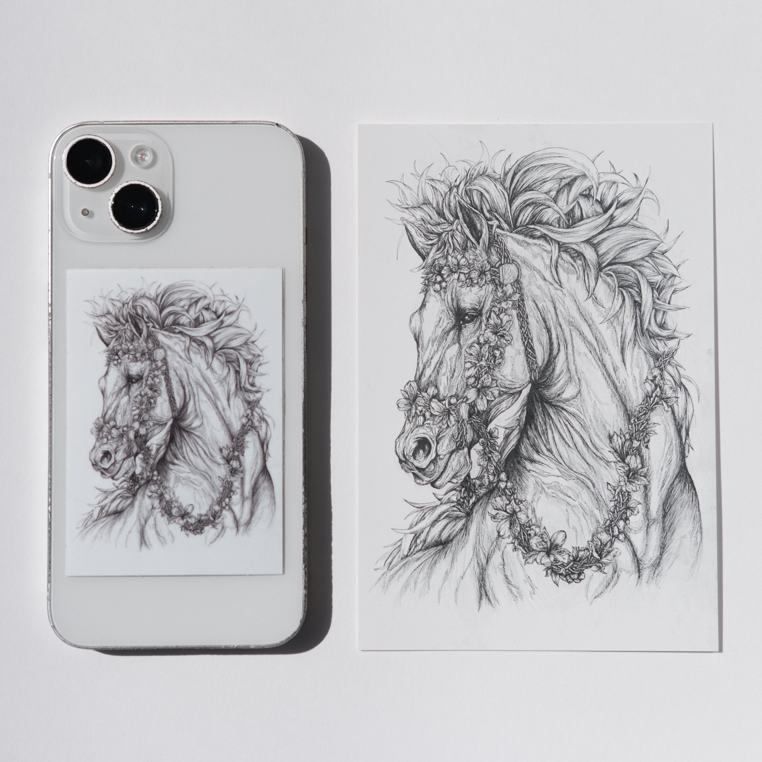スマホケースにぴったり収まるステッカーと、飾って楽しめるポストカードのセットです。